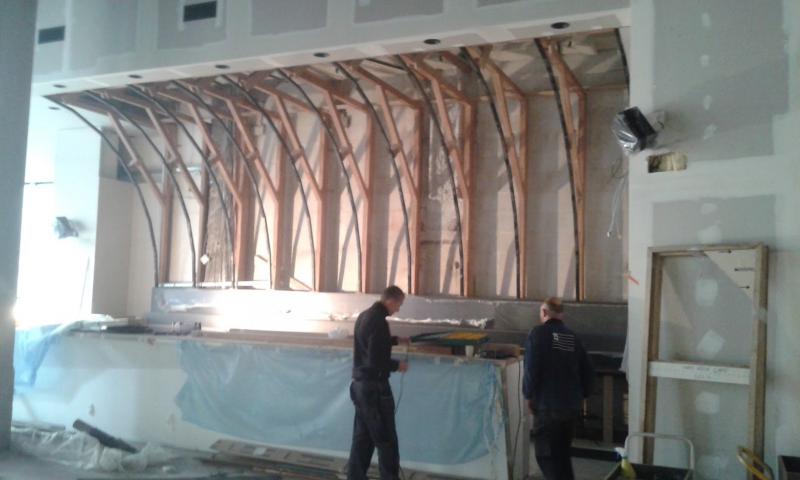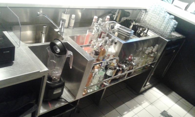 Le projet : Création de deux comptoirs pour cet établissement du centre de Lyon, avec postes cocktails sur mesure tout inox, comptoirs en résine, arrière bar en granite, podium à bouteilles lumineux, meuble froid lumineux, ...