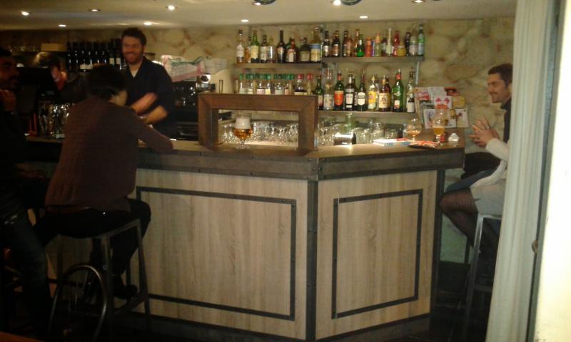 Le projet : Pour ce bar-restaurant du vieux Lyon, nous avons du commencer par refaire un mur de fond en utilisant du parement reproduisant les pierres des autres murs de l'établissement.