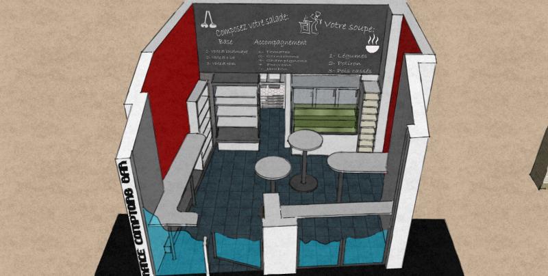 Mise en place d'une saladette sur mesure, d'une armoire refrigérée pour libre service, ainsi que tout le mobilier.